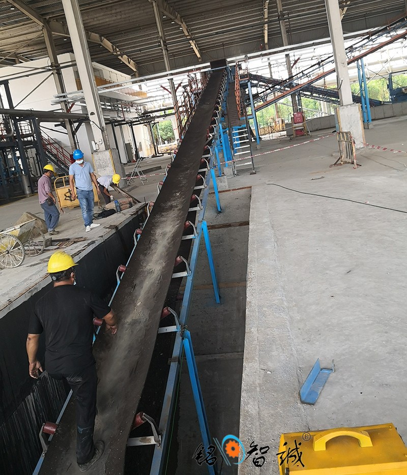 旋轉式皮帶輸送機其結構是在平形橡膠運輸帶兩側粘上可自由伸縮的橡膠波形立式"裙邊”, 在裙邊之間又粘有一定強度和彈性的橫隔板組成匣形斗,使物料在斗中進行連續(xù)輸送。擋邊帶式輸送機可廣泛用于煤炭、糧食、建材、化工、水電和冶金等部門,在環(huán)境溫度為- 19°C ~ +40°C范圍內(nèi),輸送堆積比重為0.5-2.5t/m3的各種散狀物料。對于輸送有特殊要求的物料,如高溫、具有酸、堿性、油類物質或有機溶劑等成分的物料,需采用特殊的擋邊輸送帶。